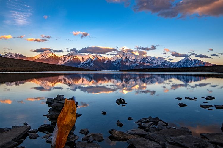 卓玛朗措国家湿地公园是此次行程中的一个亮点。路旁的光伏电站路遇朴实的藏民,邀我们到她们家里做客错在藏语中是湖的意思,朗错就是清澈的湖。卓玛朗错周围有大小21个湖。在阳光下,幽蓝的湖面在清风中泛起涟漪,波光粼粼,透着一种别样的情韵。玛尼堆静静伫立在湖边,面向着湖心和雪山的方向。为这片土地上的人承载着理想,情感和希望。当地人讲,这个时间转湖,转一次相当于转四次。天气晴好,继续沿349国道前往边坝县,探访秘境中的三色湖。
