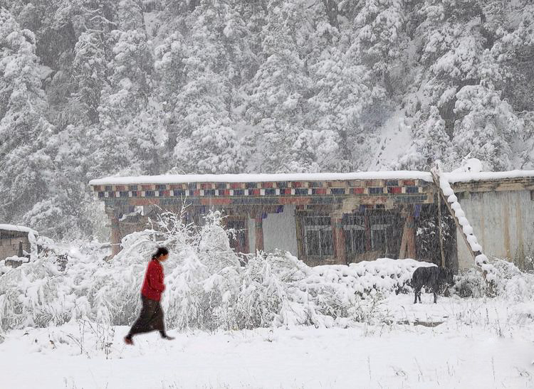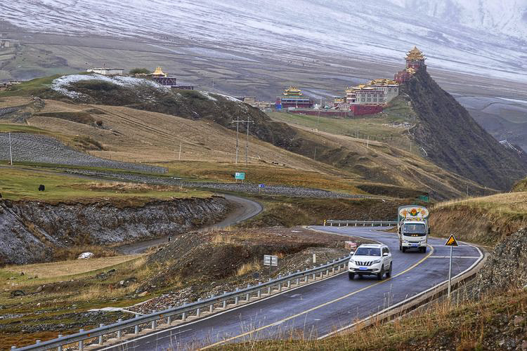 8:45从昌都出发,雪一直在天空中飘着,时大时小。车队沿G214穿越珠角拉山隧道到类乌齐县,沿路拍摄路旁村寨雪景。过了类乌齐县又继续沿317国道前往孜珠寺。