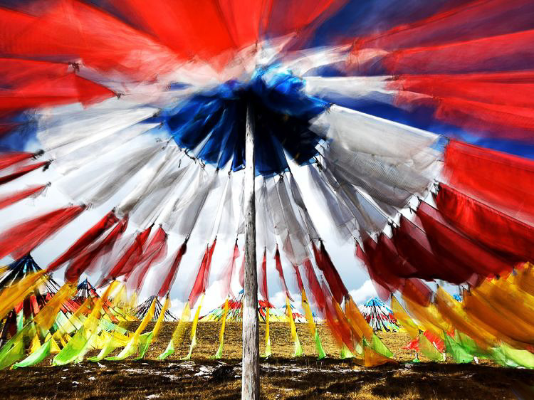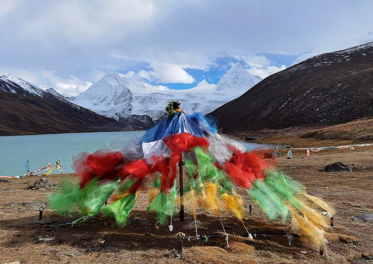 萨普山顶冰雪皑皑、云雾缭绕,山脚湖面层层波涌,湖边的经幡被风吹得呼呼响,一直等到天渐黑除了萨普二儿子和私生子外也未见萨普家族其他成员露面。