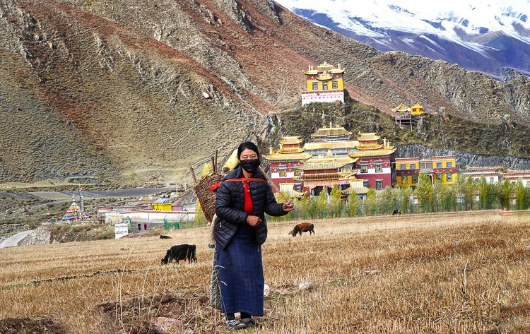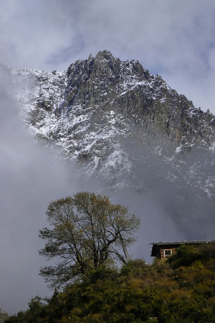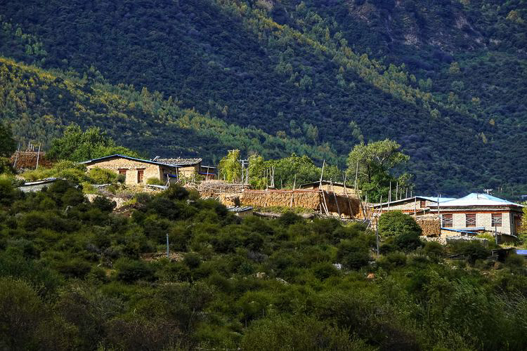 临到午点,太阳终于冲破厚云,大地似乎也有了生气。特别喜欢阳光下林树间的木雅藏居建筑,色彩鲜明醒目漂亮。木雅藏民是藏族七个分支的其一。