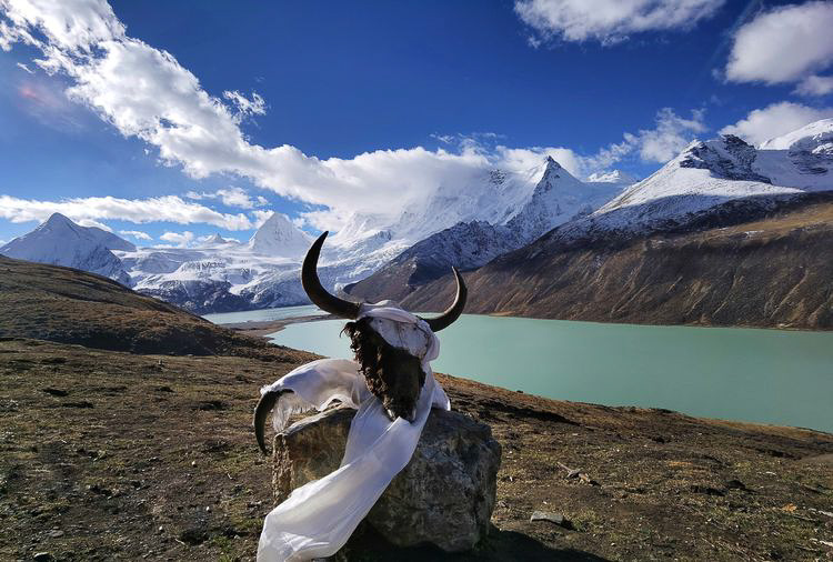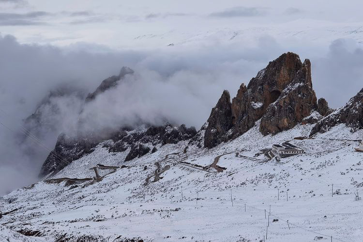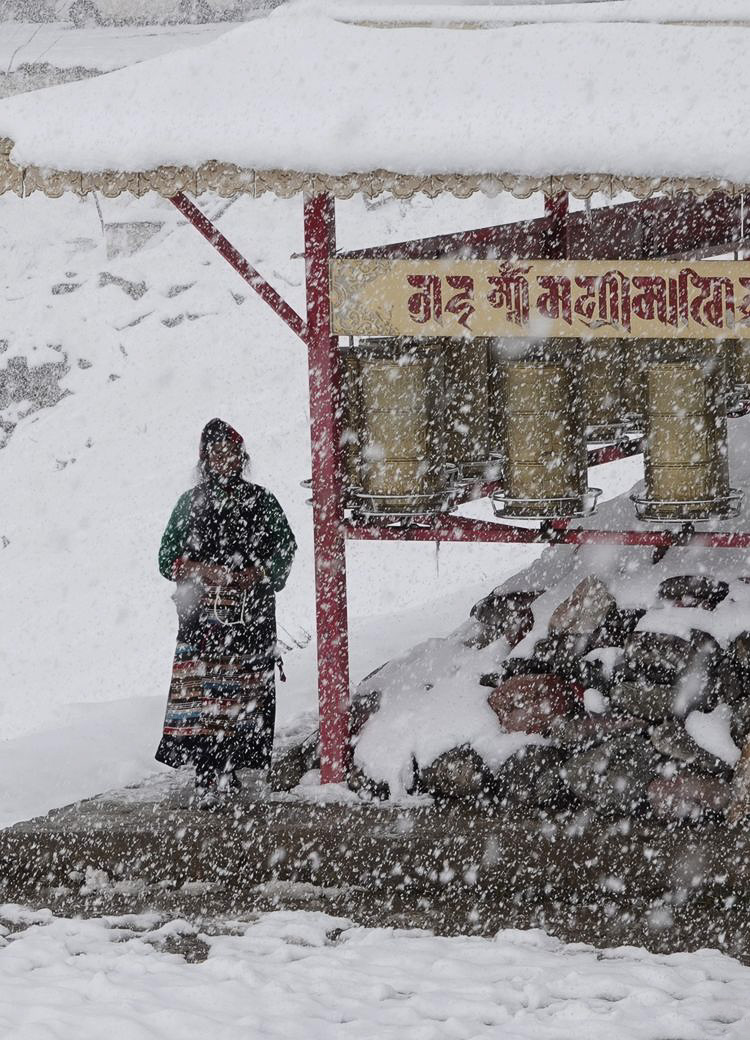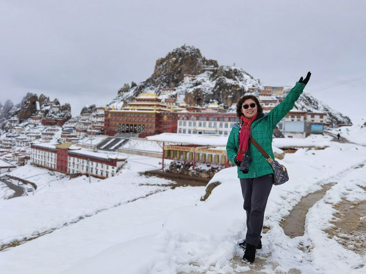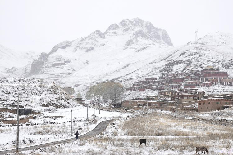 一路雪花漫舞,上山的路蜿蜒曲折弯急路险,车辆经历了12公里44道弯后急剧攀升1000多米,这种体验真是铭心刻骨。经过苦修一般的旅途终于来到了孜珠寺面前,可眼前一片白茫,上到寺对面海拔4400多米的观景台,颤抖中等待光影奇迹。也许是虔诚感动上帝,苍天终是开了眼,心心念想的孜珠寺全貌清晰的展现在面前。此刻仰望巍巍群山,苍穹无尽,万物聚灵,自然生息,心安宁而辽阔,你会满满感念当初那一眼的缘起……