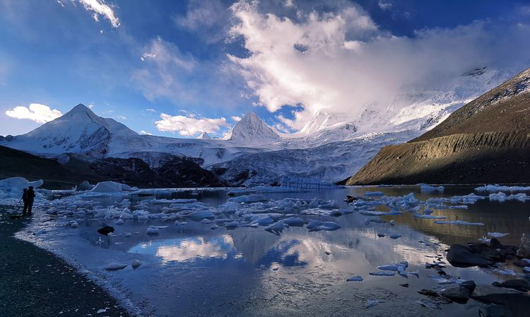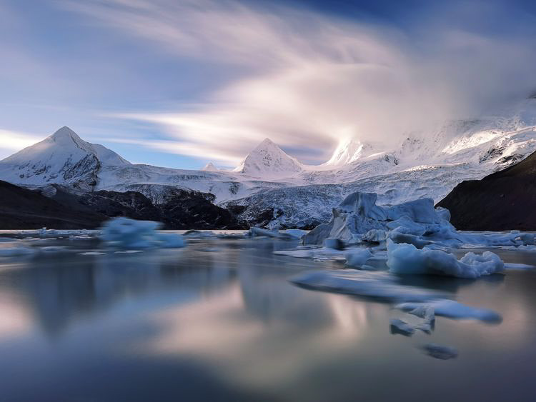 天不亮,车队又是在似路非路的山坡一路颠簸,路面出奇的坑洼,半个多小时后晃晃荡荡的车终于停了下来。我们背起摄影器材跟随领队又走了约一公里左右。天色渐渐明了,眼前萨普神山脚下的冰湖幽蓝幽蓝,湖面飘着大大小小晶莹剔透的浮冰。在场所有人见证了神山、冰湖日出景色,激动的心情无以言表。唯有遗憾的是,一直到离开冰湖,神山的家长—萨普也未露出真容。