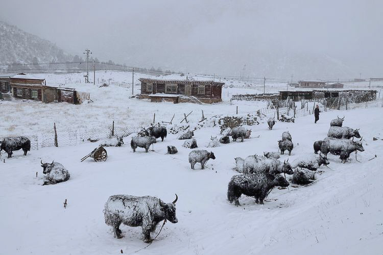 沿途拍摄村寨雪景,全天行驶了443公里,直到晚7:30才到达昌都市。