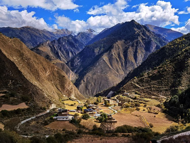 金岭乡,四周被念靑唐古拉山的雪峰环绕,中间的河谷平原分布着美丽的田园和村寨,仿如“世外桃源”。这里既有神奇传说的“千年冰湖”,也有绵延十余公里达3000多亩的千年沙棘林。