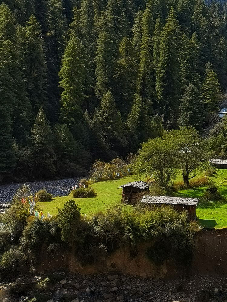 早餐后拍摄尼屋乡河谷、峡谷及田园风光,这里是念青唐古拉山脉东部的深山峡谷,头顶雪峰林立,脚下江流湍急,林间色彩缤纷,好一派原始风光。
