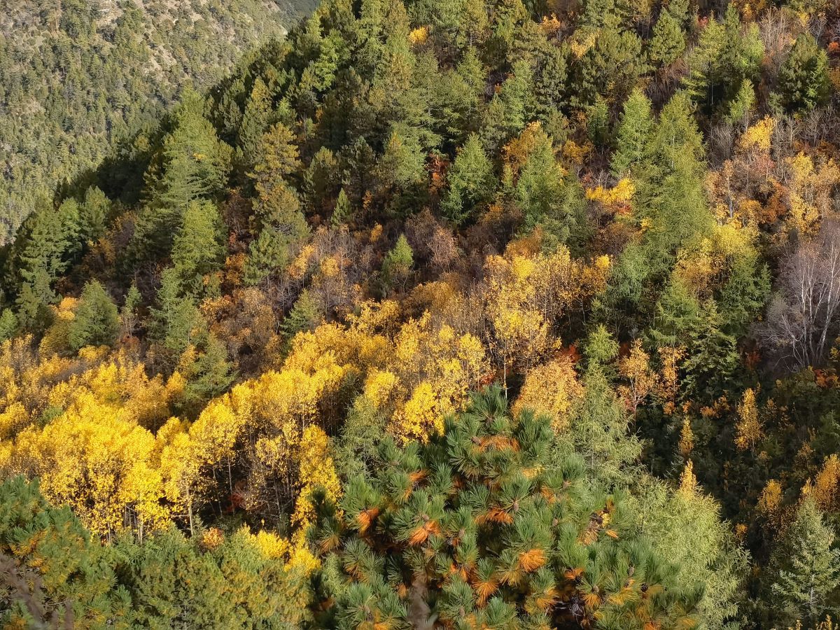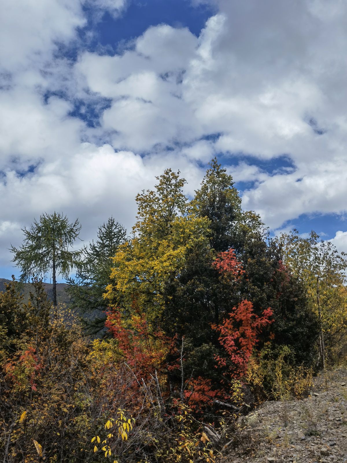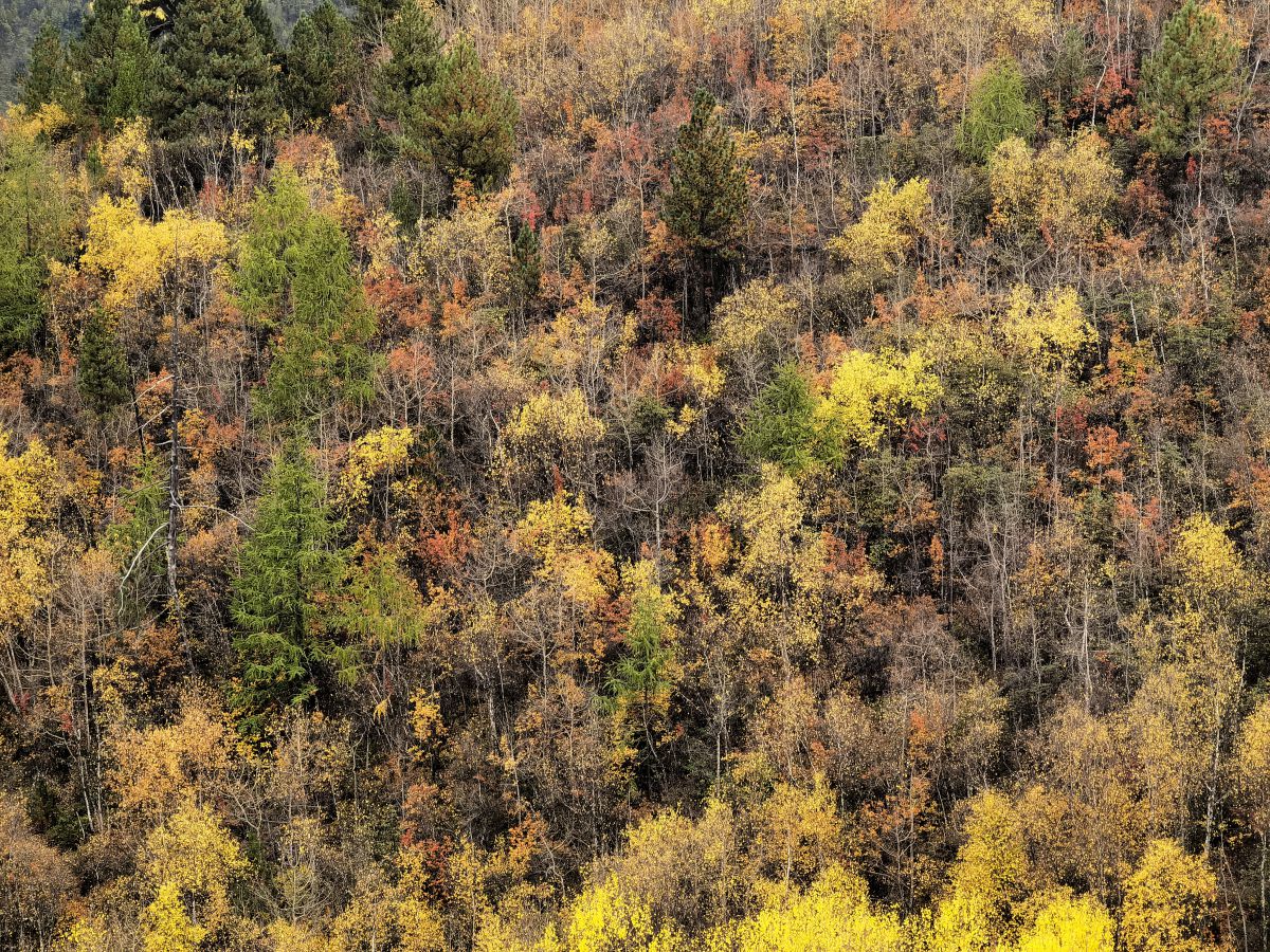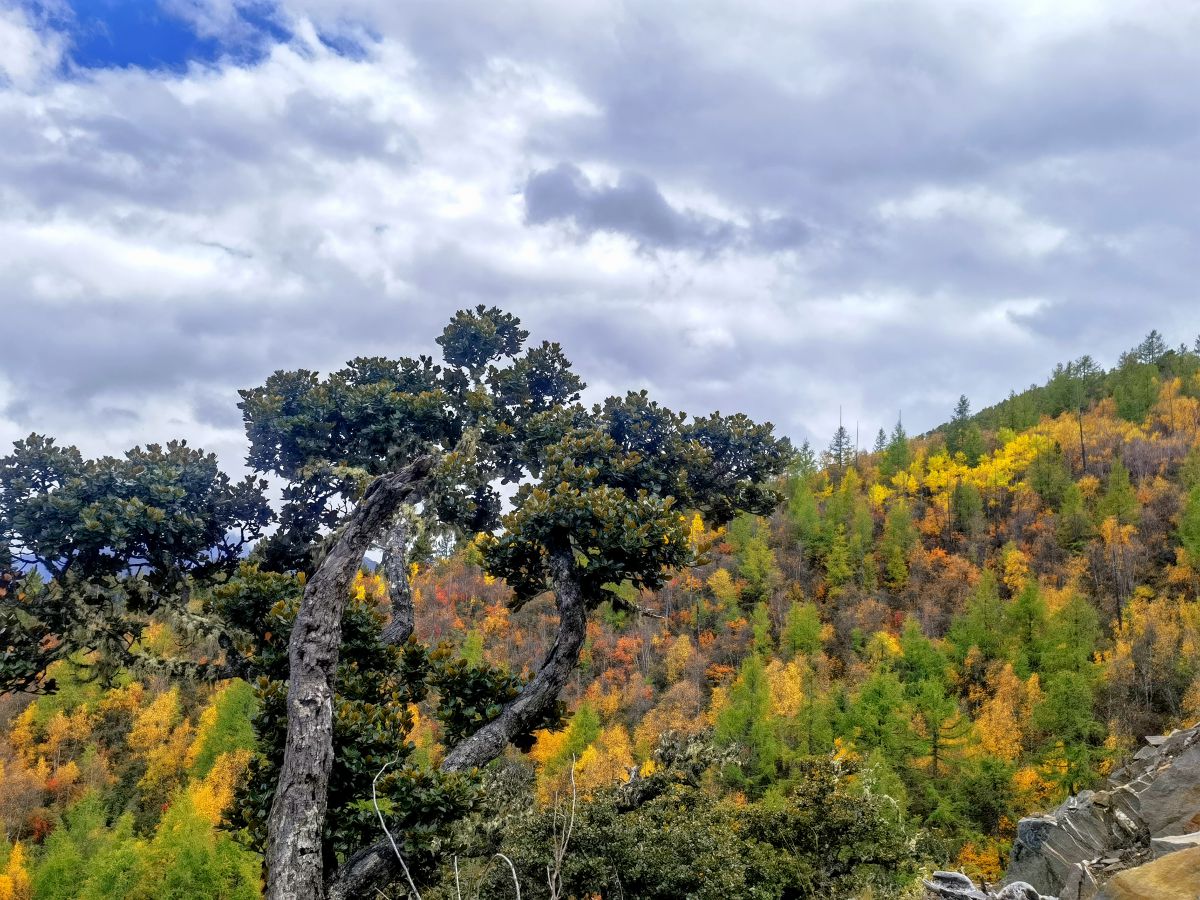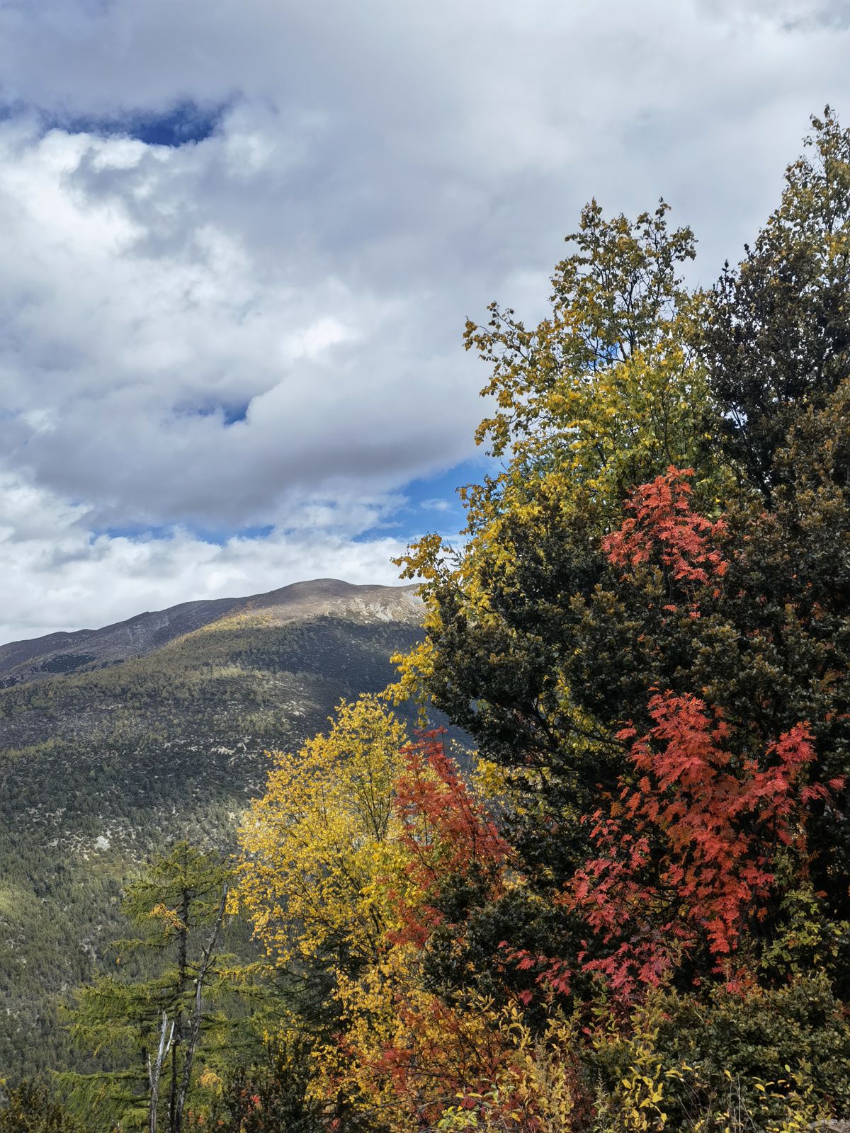 巍峨的山峦以及点缀其间的彩林
