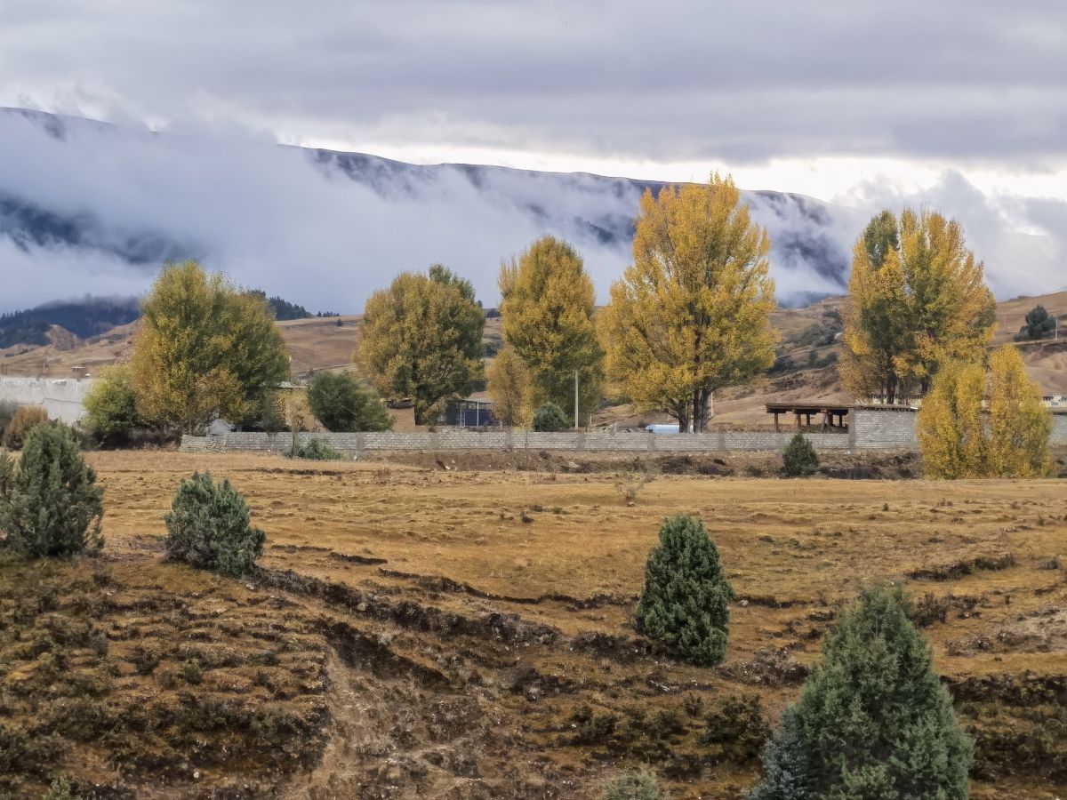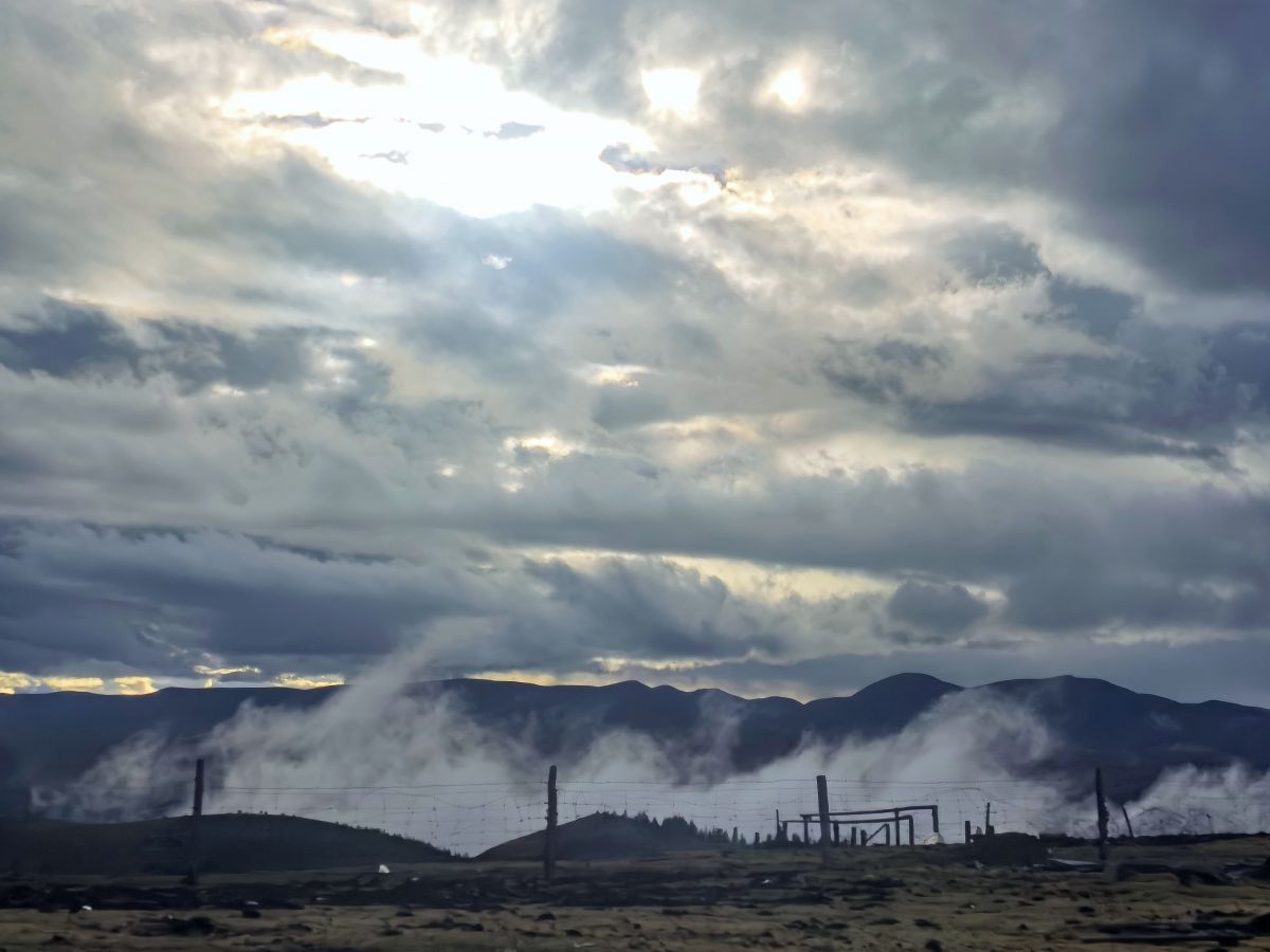 措卡湖下面的田园,仙雾缭绕