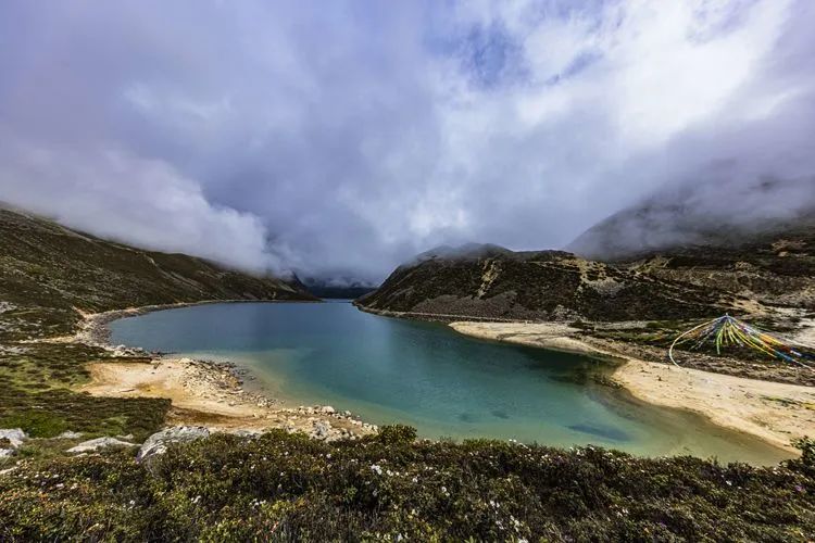 堆瓦寺拍摄普玛雍措和库拉岗日雪山。海拔5000米。