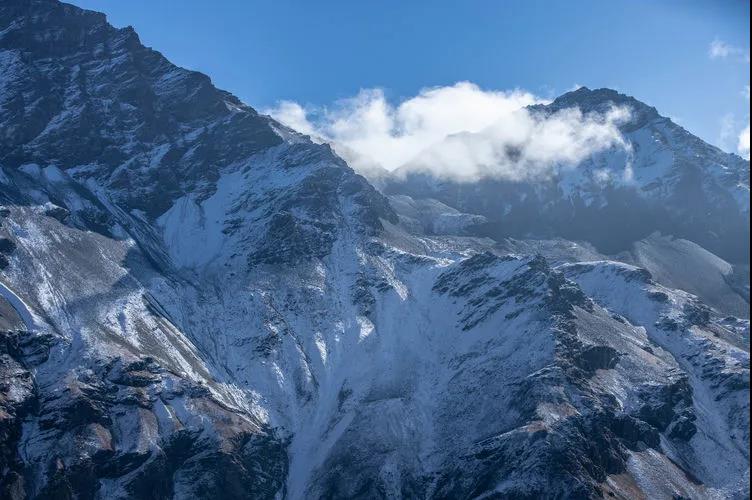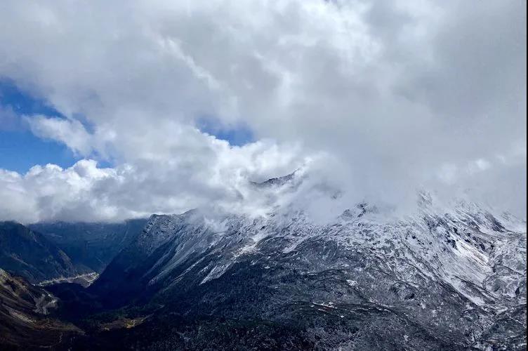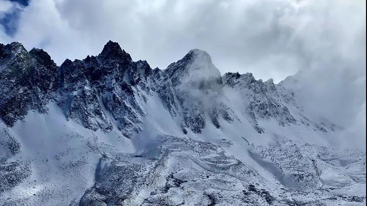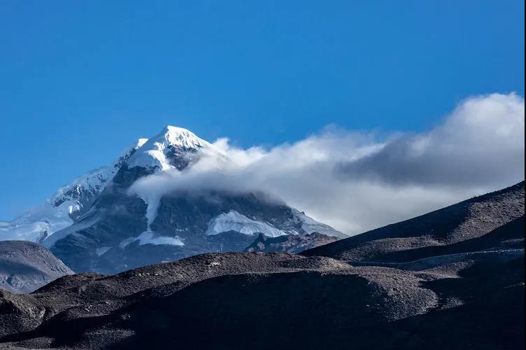 与南迦巴瓦隔江相望的加拉白垒峰被白云遮住了半张脸