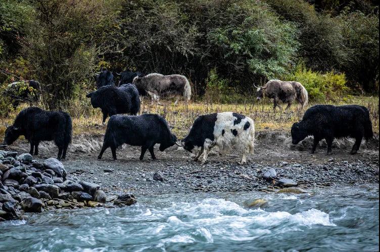 强壮的牦牛和马儿不时闯入镜头,给这世间美景増添不少生气。