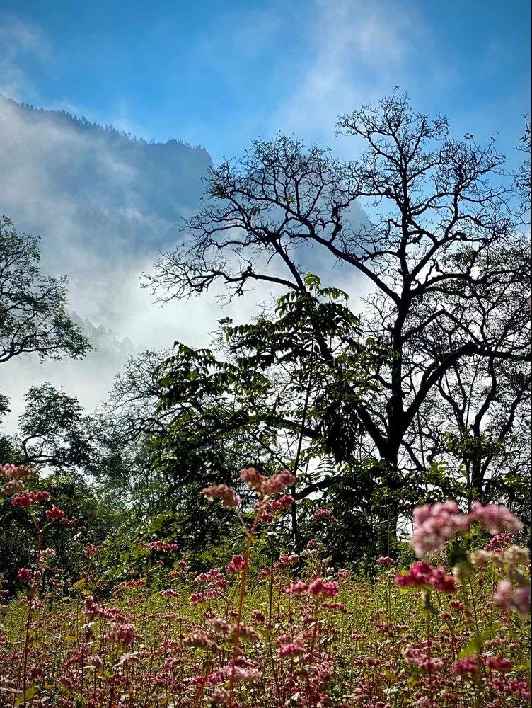 扎日沟是喜雅拉雅南坡一处绝美秘境。这里森林苍翠,草甸宽阔。碧绿的草地上各色鲜花盛放,绝壁下,沟溪边的苍劲大树其造型美得让人不敢相信。
