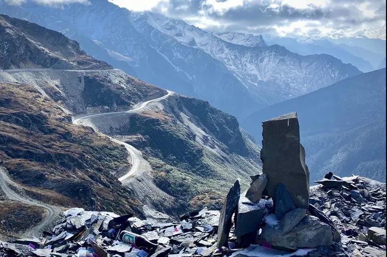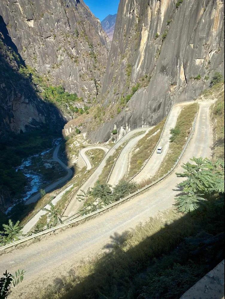 路烂、弯多弯急,落石多,车子过后尘土飞扬。在危险路段,司机要随时关注路旁悬崖上可能落下的石头,不能停车,快速通过。
