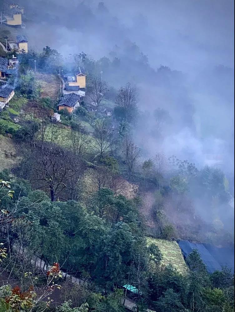 俯瞰晨雾中的山村