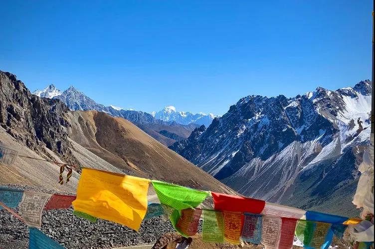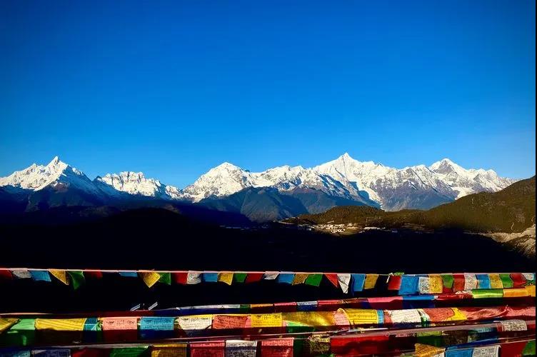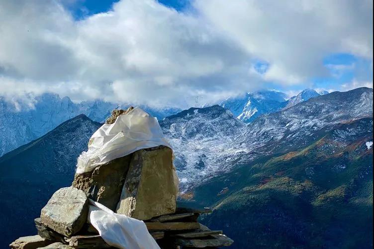 在雄珠拉垭口可以远眺梅里雪山西坡的景色。