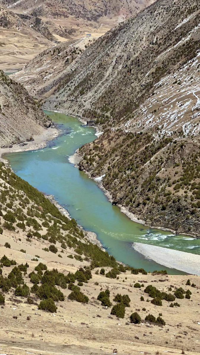 离开那曲市,一路走G317国道向东,然后向南拐入558国道,不知道什么时候与怒江比肩同行了。而且在比如县境内看到了怒江第一湾。这个第一湾不亚于云南丙中洛的第一湾!这里的怒江走了一个反S。如果时间充足,就跑到最高处看它一个全貌。