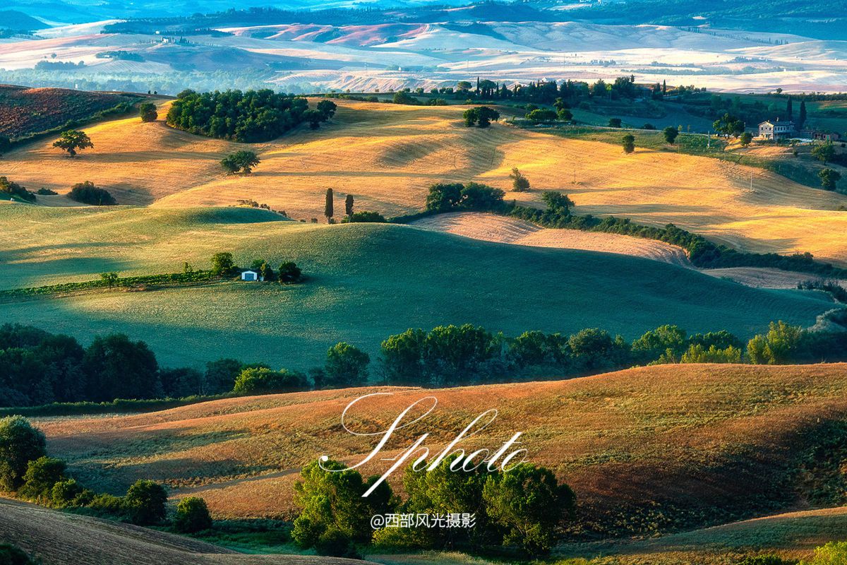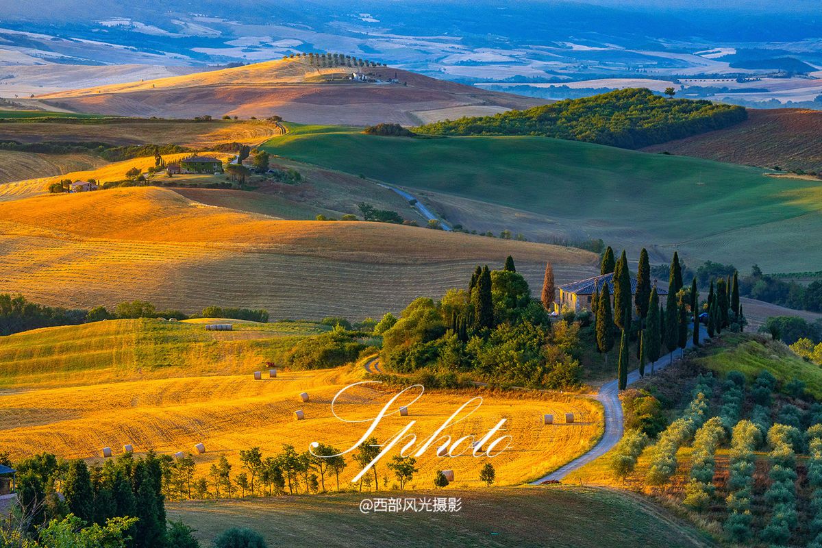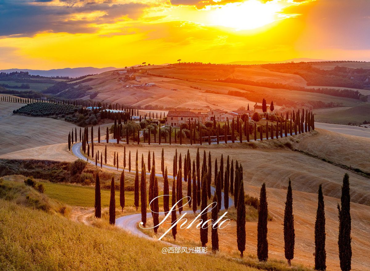 清晨和上午尽情拍摄卡斯特卢乔花海,午后前往拍摄意大利代表的风光摄影地一托斯卡纳,这里除了拥有巨大的艺术宝库,更有迷人的自然美景。托斯卡纳的区域多是丘陵,两边镶着绿柏的白色公路穿越那起伏连绵的丘陵,一直通向一座城堡,一处别墅,一个农庄或者一栋独楼。在有各种优美线条的地方拍摄日落。