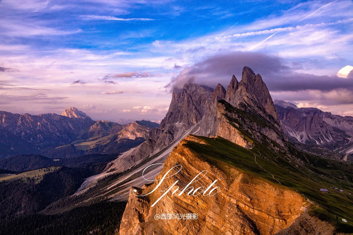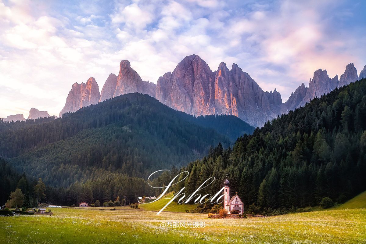 清晨拍摄五渔村日出景色后前往多洛米蒂山区,多洛米蒂山位于意大利境内的东阿尔卑斯山脉,这里空气纯净,风景如画,它独树一帜的山体结构成为众多旅游者心目中独一无二的最美山群,被联合国列为世界自然遗产,也被称为“阿尔卑斯山天堂”。当天傍晚在号称在全球最上镜的富内斯山谷拍摄绝美的日落景色。