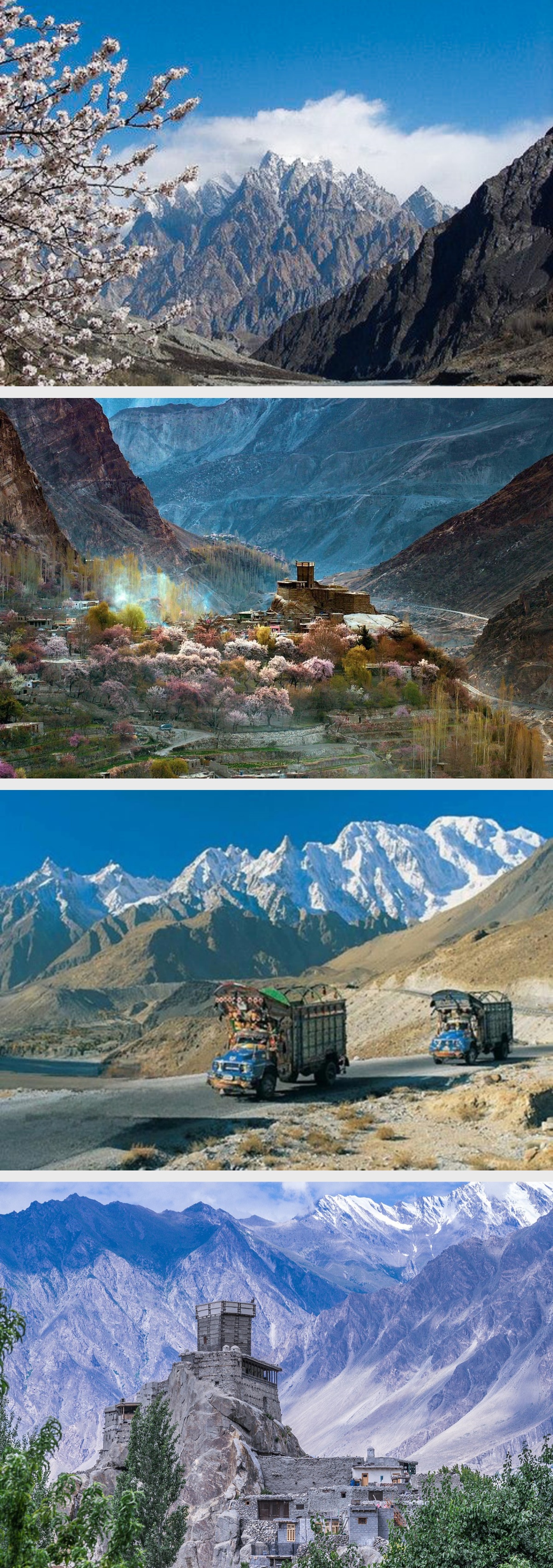 罕萨山谷是世界上高峰和冰川最密集的地区,是地球上最令人敬畏的山地景观之一,是地质学家、登山家和旅行家梦寐以求的地方。在喀拉昆仑公路(KKH,也叫中巴公路)开通之前,这里是只有二万人且封闭、自给自足的罕萨王国。这是世界上唯一能看到五座7000米以上雪山的村庄。