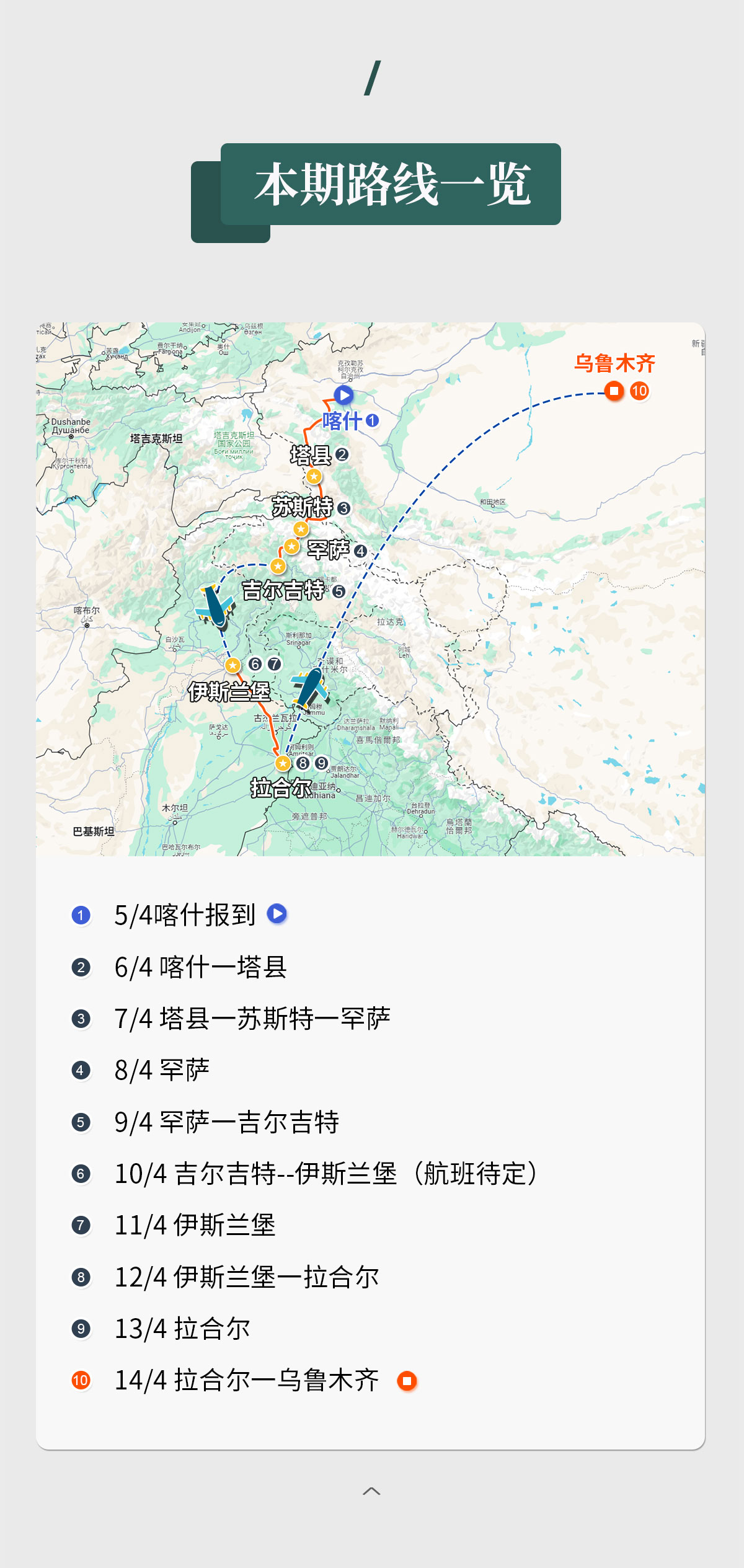 注:若届时中巴陆地口岸未开,则行程调整为: