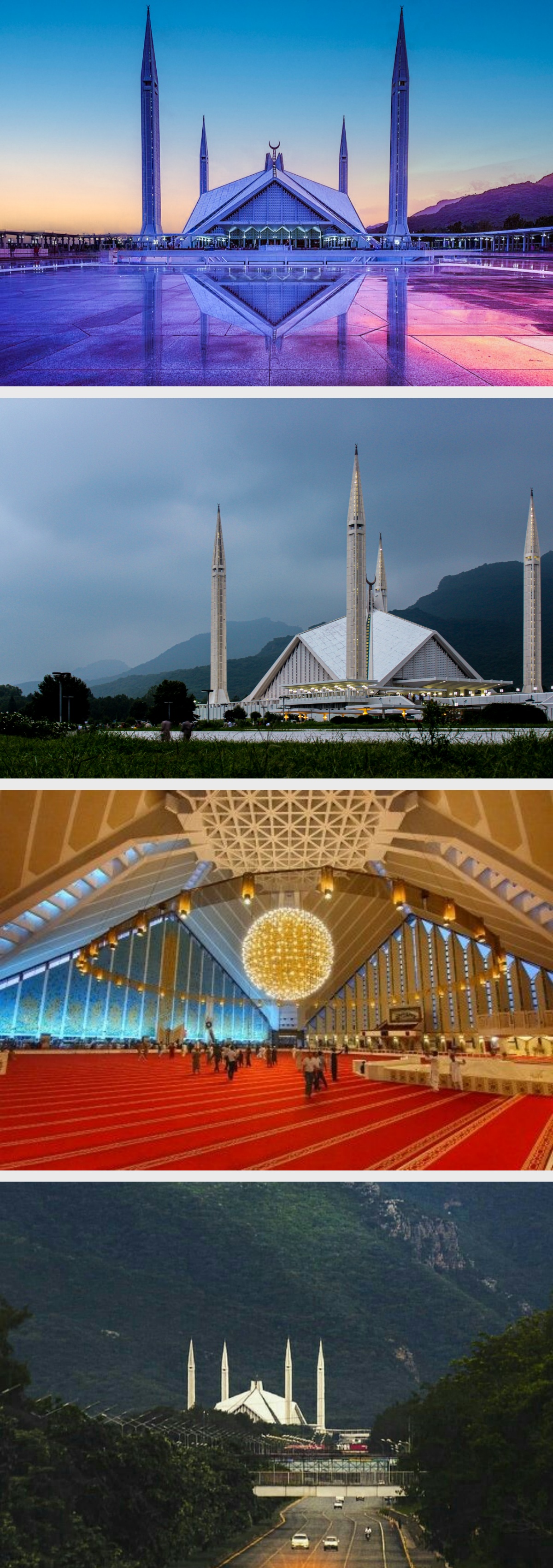 下午拍摄费萨尔清真寺日落及夜景。费萨尔清真寺是伊斯兰堡地标性的建筑,这座由沙特皇室捐建的清真寺,是世界上最大的清真寺,独树一帜的建筑风格曾经令许多外国友人流连忘返;寺前广场内有【巴前总统齐亚·哈克墓】