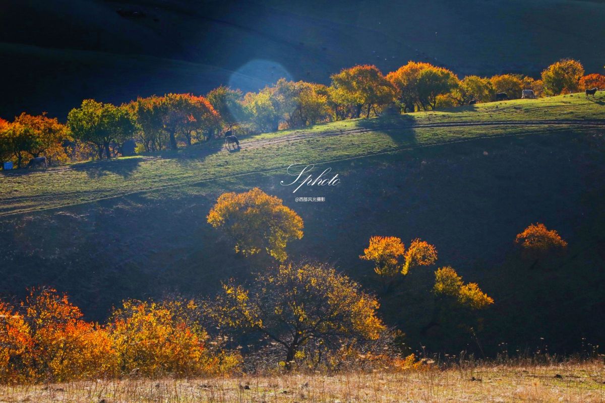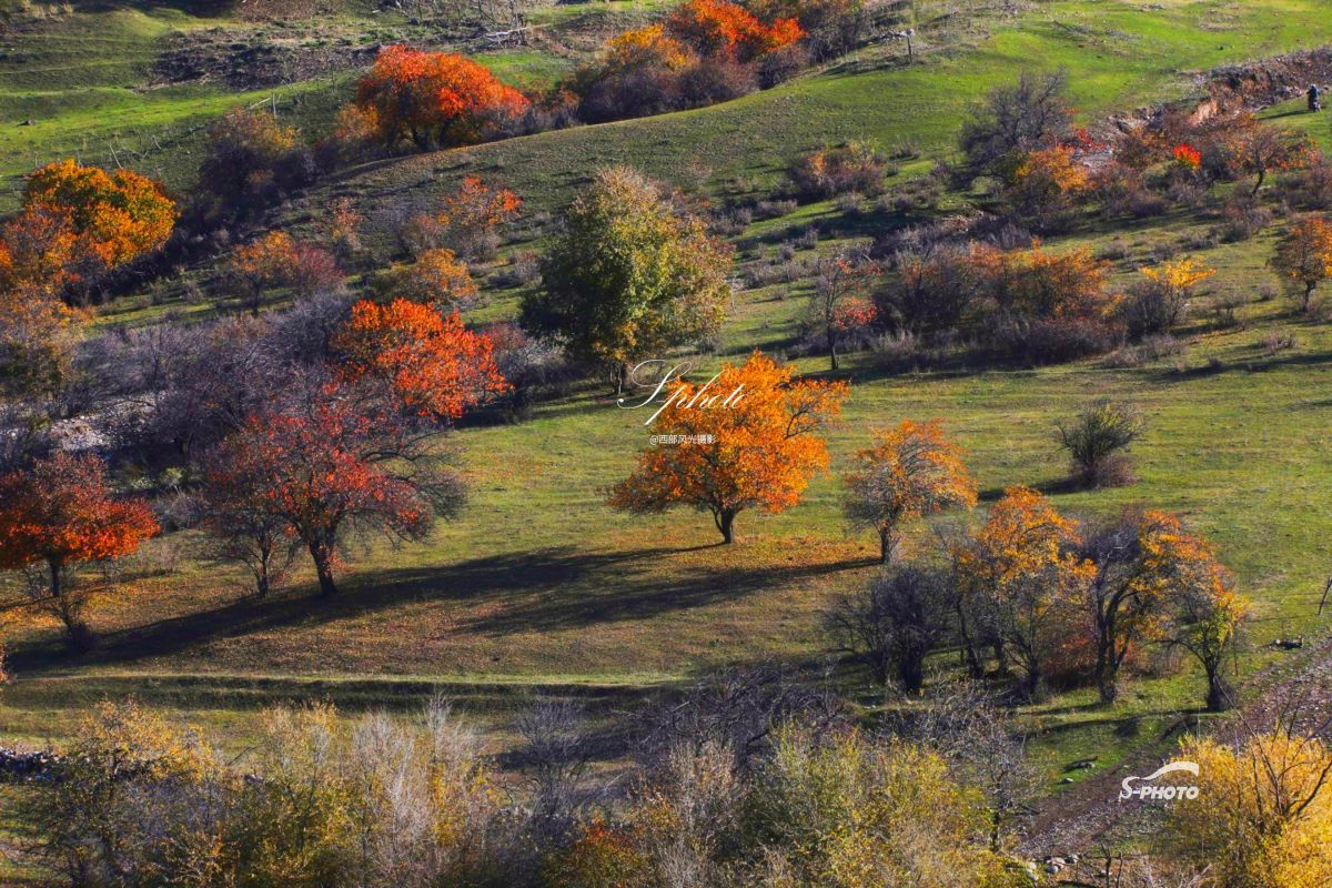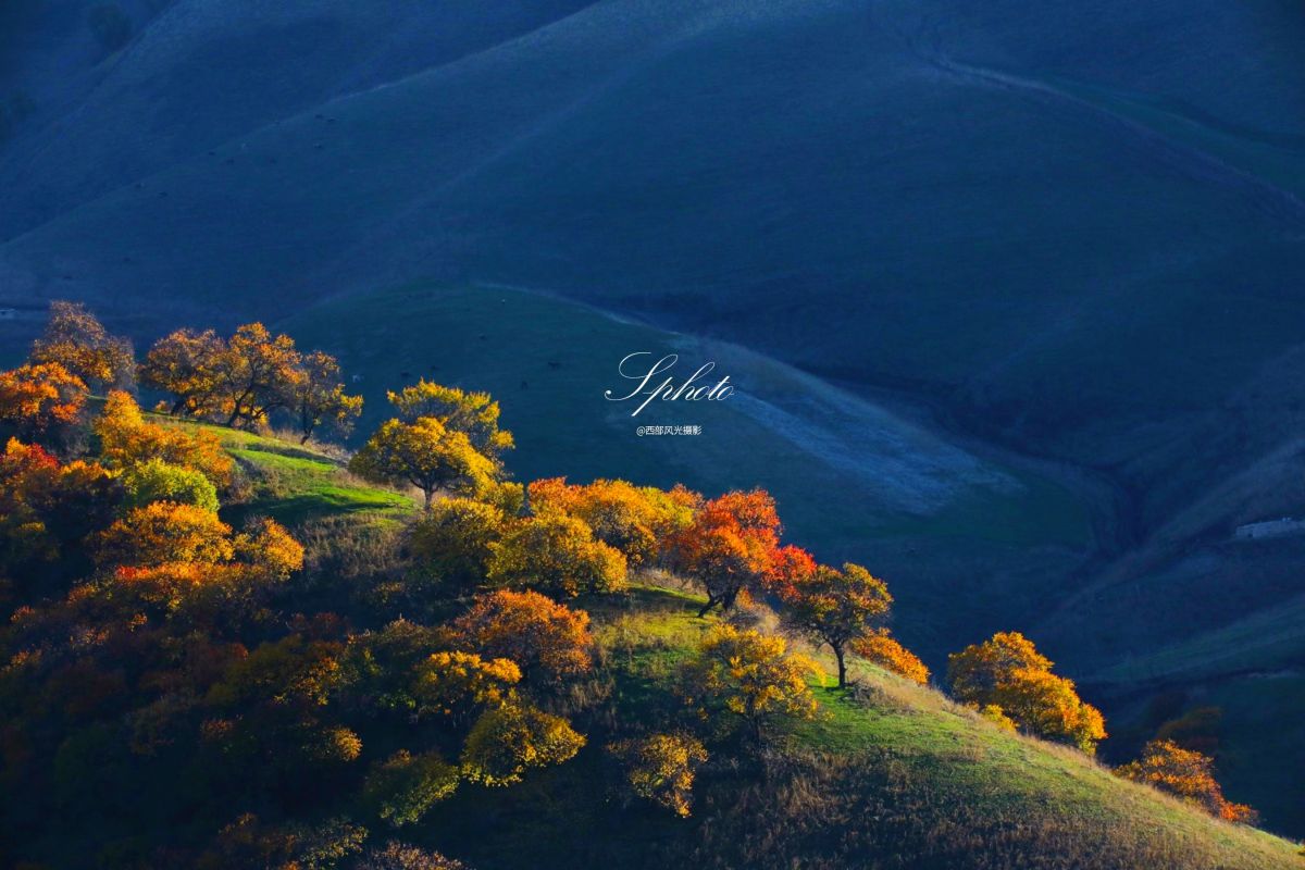 在新疆西天山的伊犁河谷中生长着大片中世纪遗留下的野杏林,其中以新源县吐尔根乡的最为集中。阳春4日,漫山遍野盛开着粉白的野杏花。然而在深秋的11月初,漫山遍野的野杏树叶一片金红,与金黄的草坡一起构成伊犁河谷最后一片艳丽秋色,此时的吐尔根杏花沟没有一个游人,除了遍山的红叶,就是羊群、牛、马和我们。拍摄完这最后的多彩大地,前往库尔德宁。位于天山雪峰下的库尔德令,这里也正演奏这个秋天最后的辉煌乐章。下午和傍晚在鲜为人知的萨哈景点拍摄天山连绵雪峰和优美的草坡线条。萨哈是珍藏于天山深处的一颗明珠,犹如一块镶嵌在阿吾勒山上的一颗明珠。山峦起伏,绿草如茵,辽阔的草原,柔美的溪水,隽秀的群山,松林如涛的气势以及野果林的壮美尽收眼底,金秋的萨哈更是色彩斑斓、五彩缤纷。