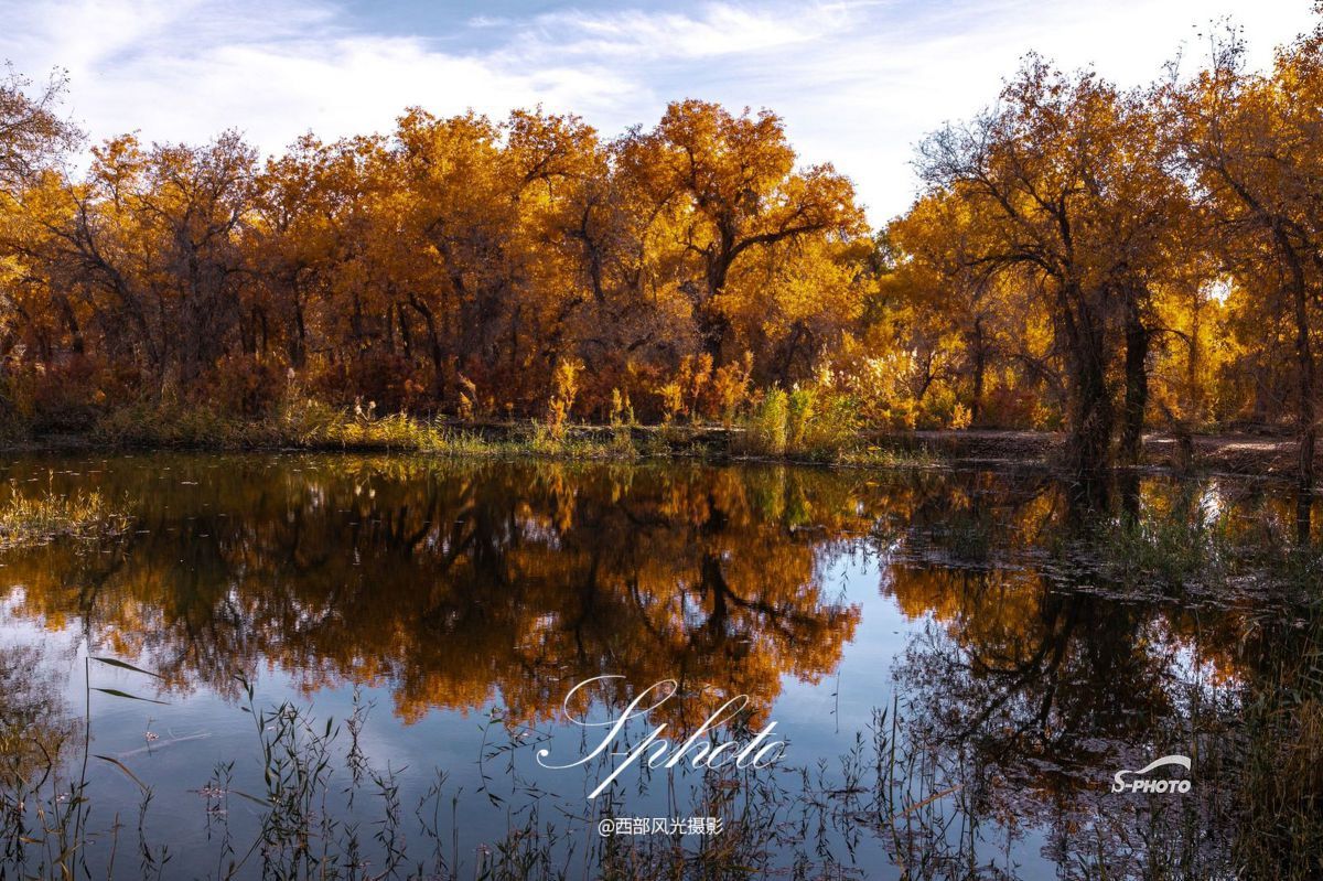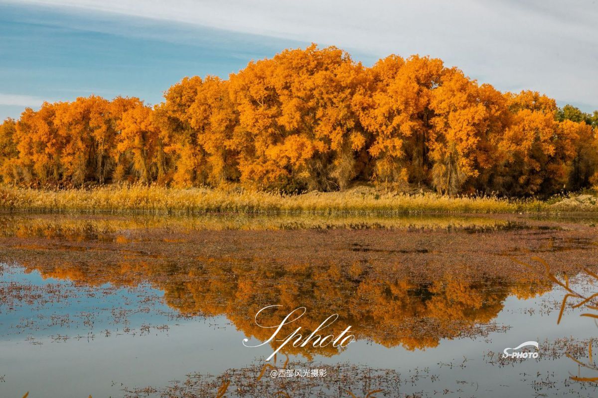 7. 塔里木盆地边缘的罗布淖尔湿地公园,这里是中国西部地域面积最大的湿地之一,景区涵盖塔克拉玛干沙漠、游移湖泊、塔里木河、原始胡杨林和草原。金秋金黃的胡杨林更使罗布淖尔进入“黄金时代”。