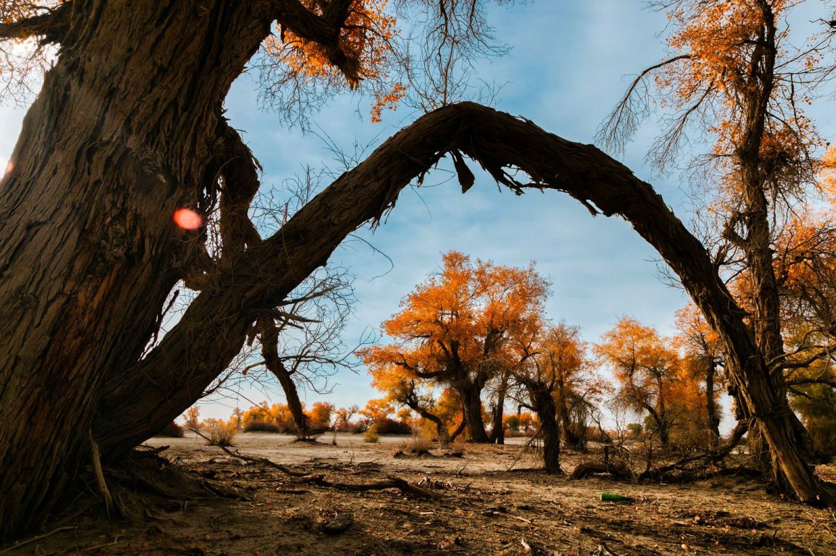 4. 独家安排由西向北向东再向南环行整个塔里木盆地,深入拍摄深秋金色胡杨林,一网打尽塔里木盆地最美胡杨林。