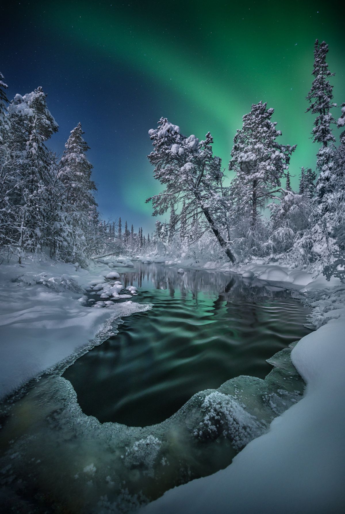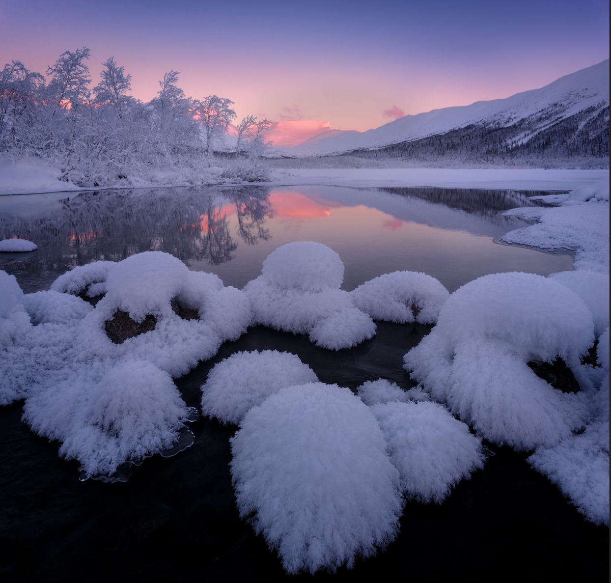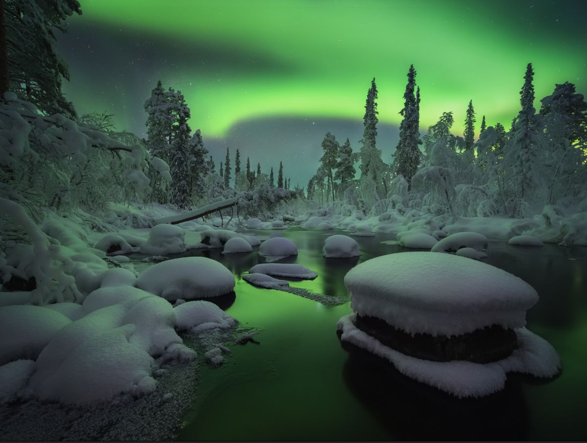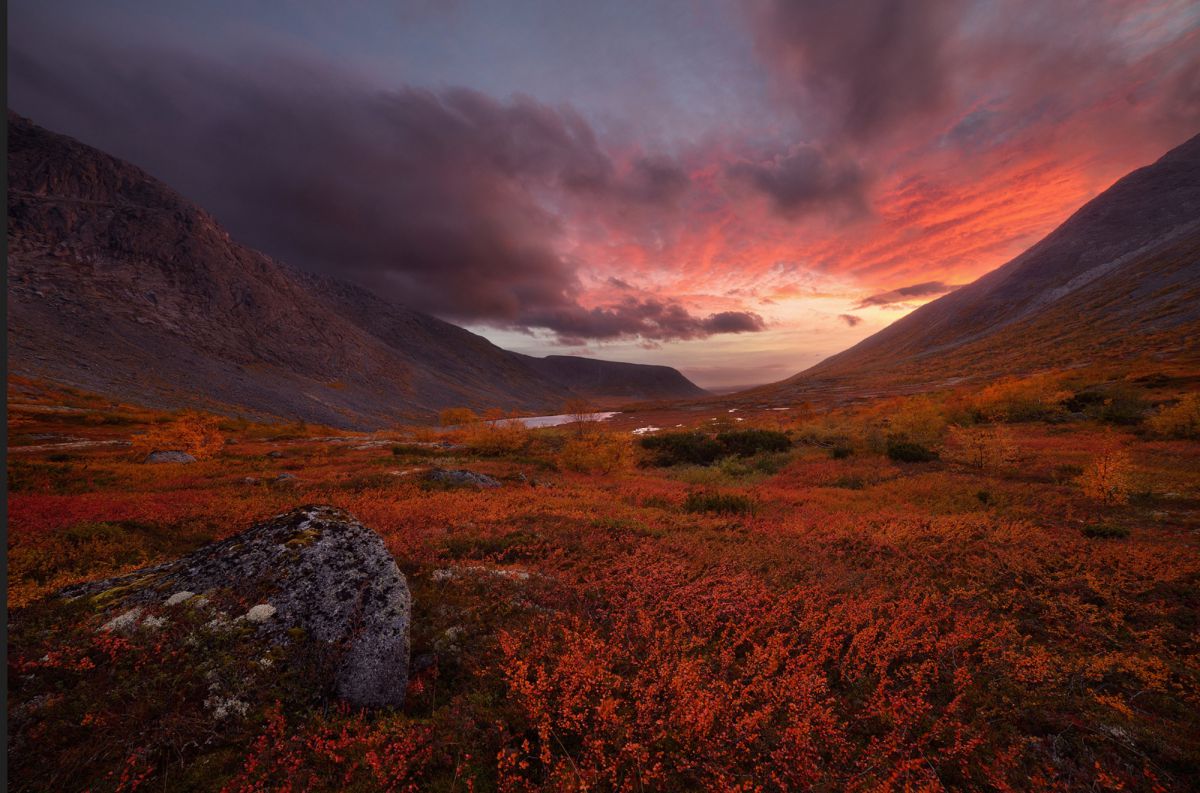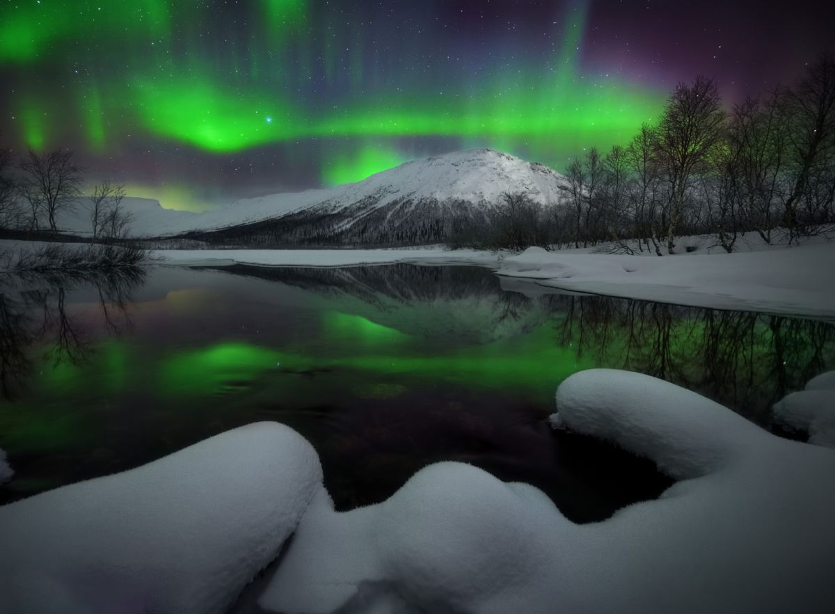 由于受北大西洋暖流的影响,拉普兰地区更加常见的是黑白相间的苔原、山脉以及浮冰的湖泊。每年的八月到次年四月,都有极高的概率观赏到绚丽的极光。最令人惊异的是冬天,此时大雪积山,万籁俱寂。银色的原野,灰色的天空,俨然构成一幅独特的画面。